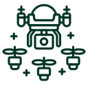 Autonomous ground robots are distributed across the field based on size and inspection requirements.